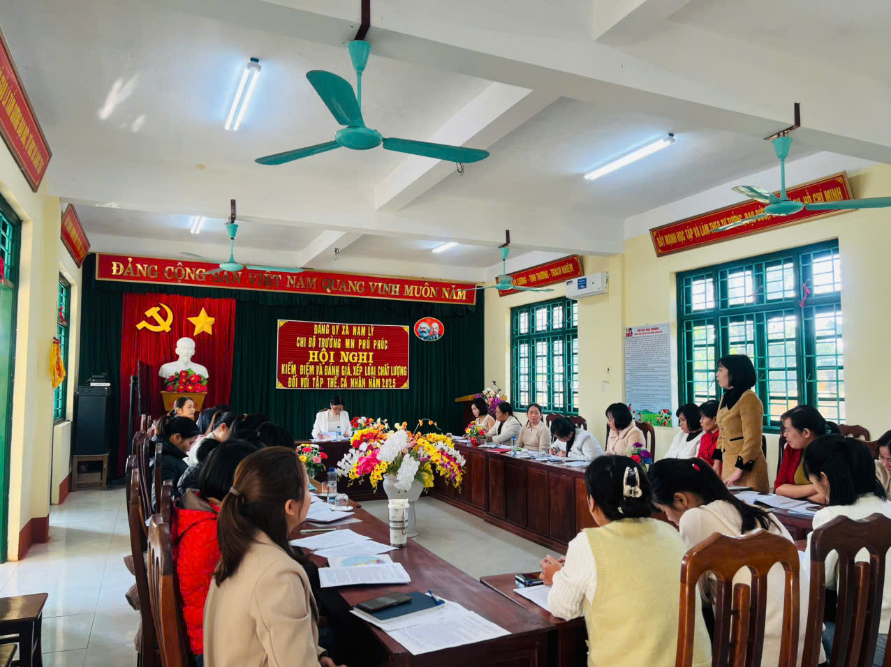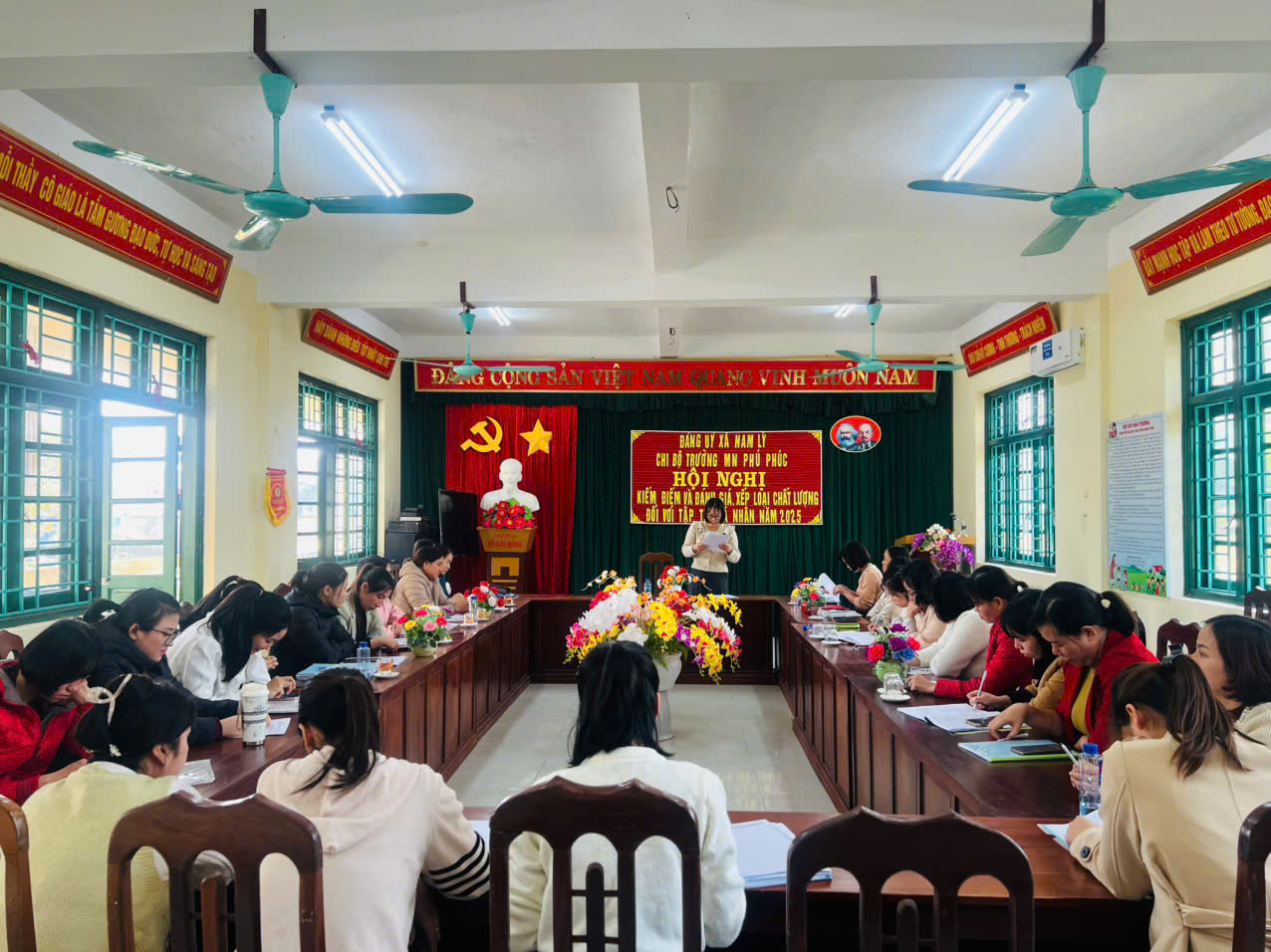 Sáng ngày 29/11/2025, chi bộ Trường mầm non Phú Phúc đã tổ chức triển khai kiểm điểm và đánh giá, xếp loại chất lượng tập thể, cá nhân năm 2025.