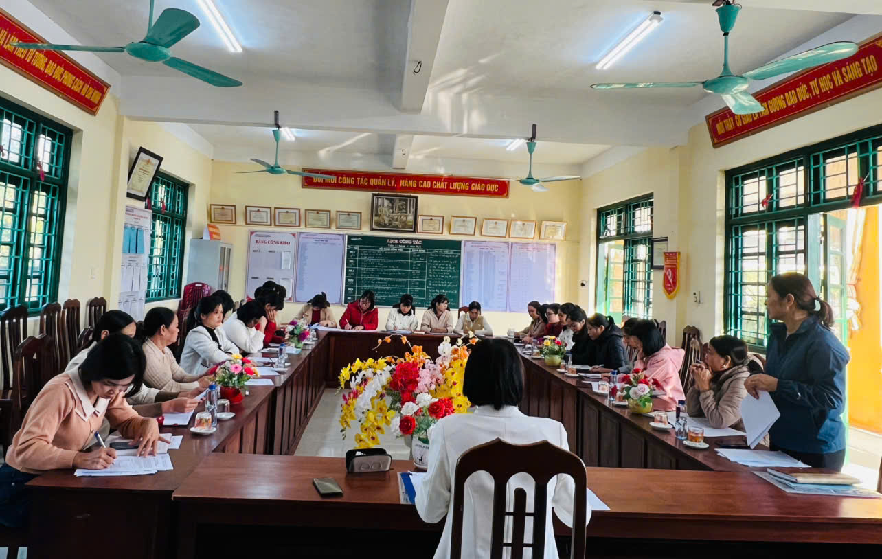 Cuộc họp được diễn ra nghiêm túc, khẩn trương với sự tham gia của tất cả các đồng chí đảng viên trong chi bộ trường mầm non.