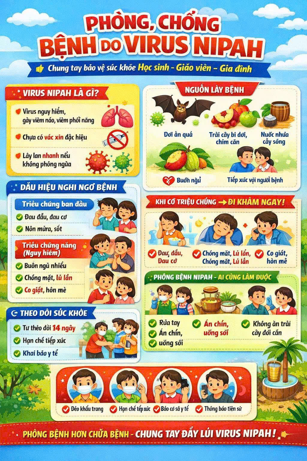 Trước diễn biến phức tạp của một số dịch bệnh truyền nhiễm nguy hiểm, trong đó có bệnh do virus Nipah, để bảo vệ sức khỏe cho trẻ em và cộng đồng, nhà trường trân trọng đề nghị các bậc cha mẹ phối hợp thực hiện tốt các biện pháp phòng, chống dịch bệnh theo khuyến cáo của Bộ Y tế