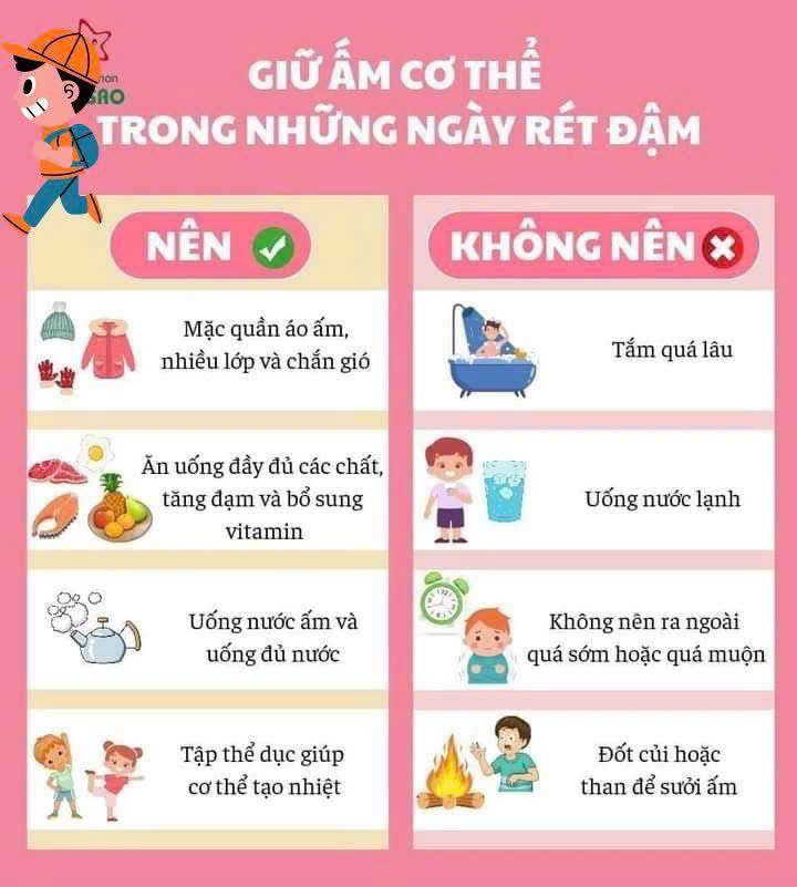 • Trong những ngày rét đậm, rét hại, hạn chế cho trẻ ra ngoài trời, nhất là vào sáng sớm và chiều muộn.